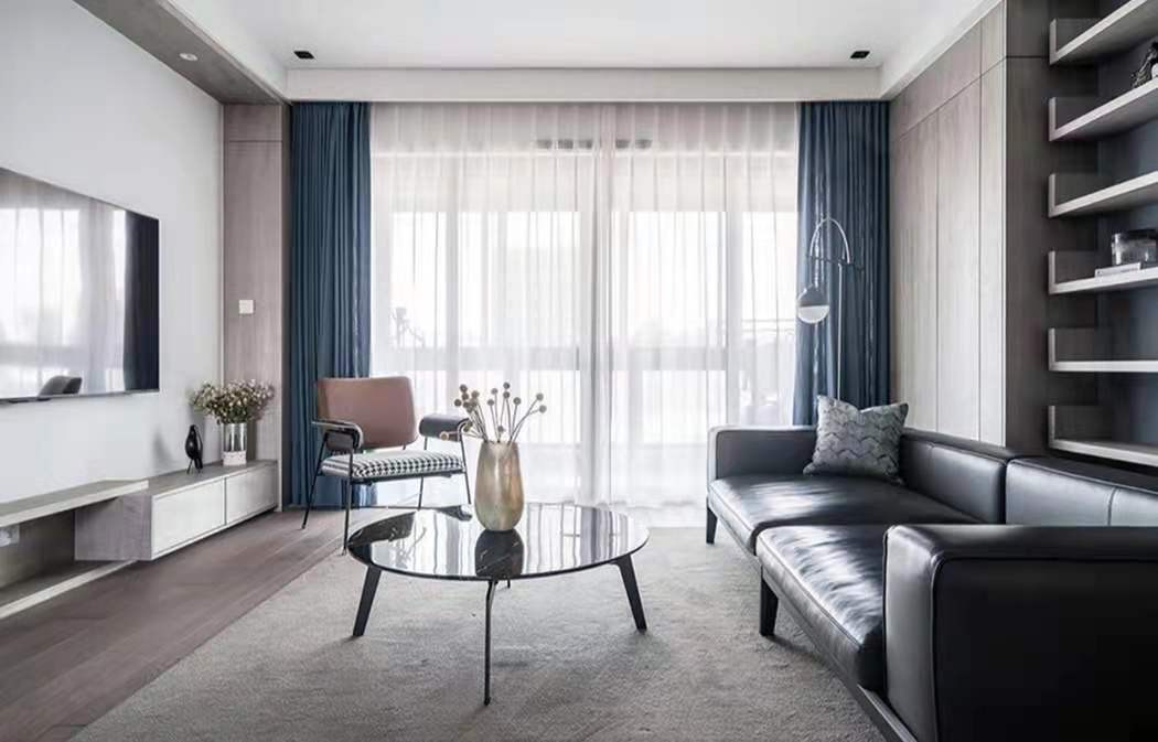 在颜色取舍上避开跳跃性色彩,提取木色、蓝色、黑色、白色进行填充,在功能布局上,通过抬高、隔断、隐形等来划分区域空间