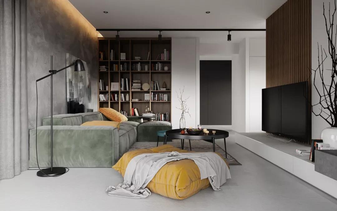 这是一个174㎡的一家四口的住宅,位于白俄罗斯小镇,设计师在极简主义的风格基调上,用不同的色块来堆积呈现空间的多元化,让空间散发出焕然一新的感觉。