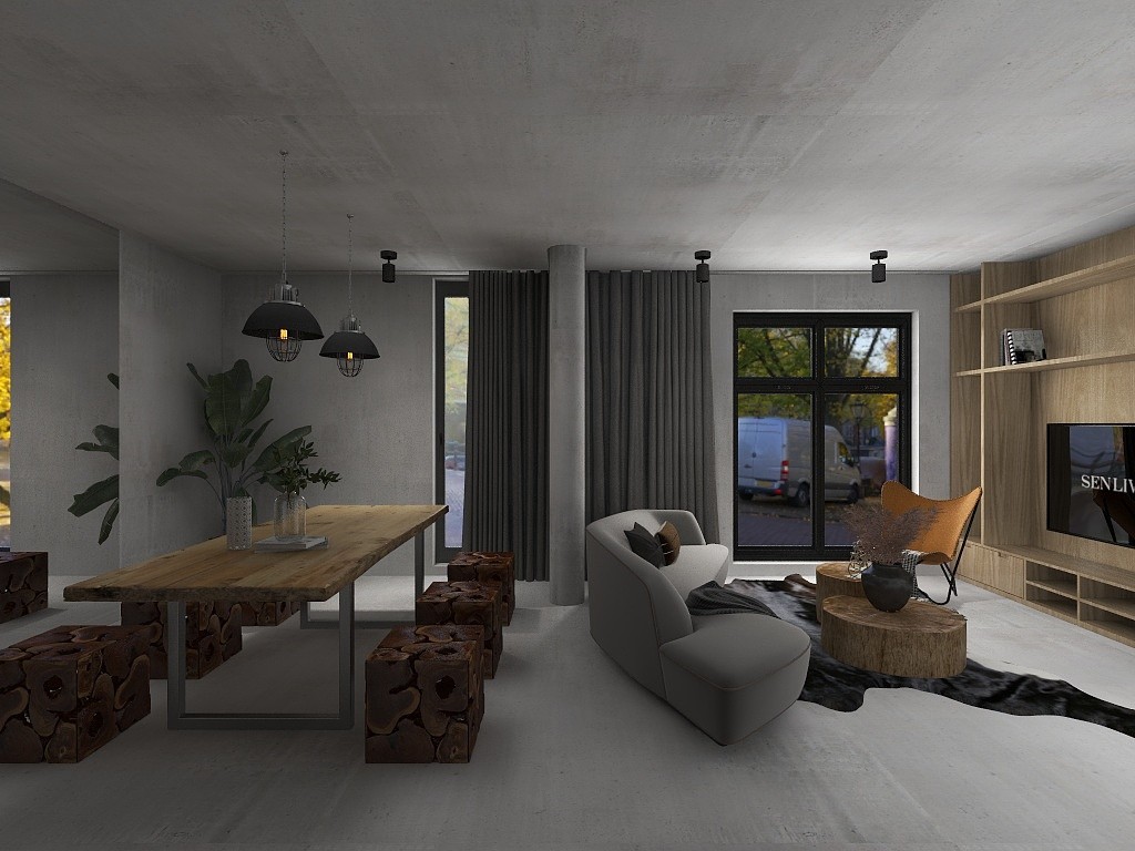 餐厅采用原木桌子、凳子和个性吊灯,落地窗让解放视觉,一边享受美食一边看外面的美景。