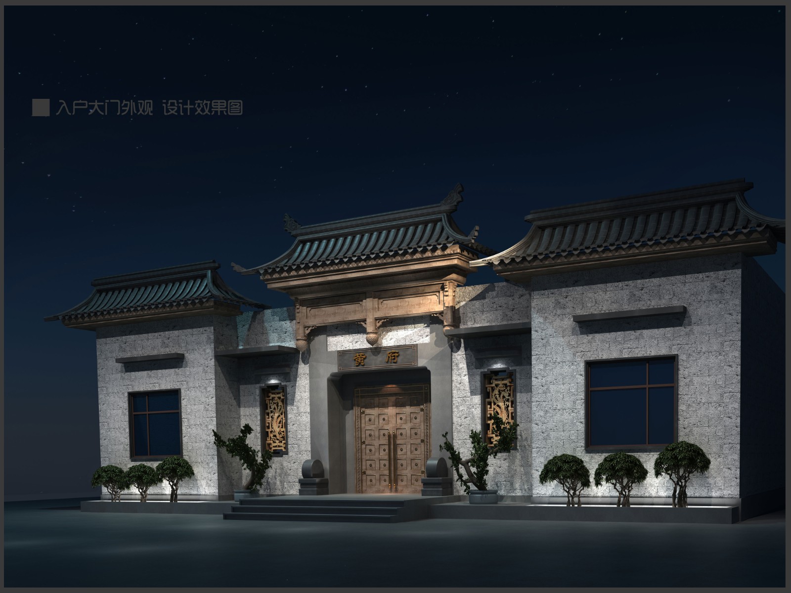 自建别墅外观设计,起初房主黄先生根据自己的想法盖的类似***样式的庭院,参考的网上搜来的套图,结果花了大价钱房子盖起来了,发觉没有达到理想的效果和档次,于是找到我进行设计,经过详细的沟通,他想要的是一种有文化底蕴的气质和风格,于是就有了这套设计方案,中式古建风格外观,体现了庭院的雅致和大气,主人的沉稳和端庄,将北京***胡同文化带了进去,黄先生看到这套方案当场敲定。