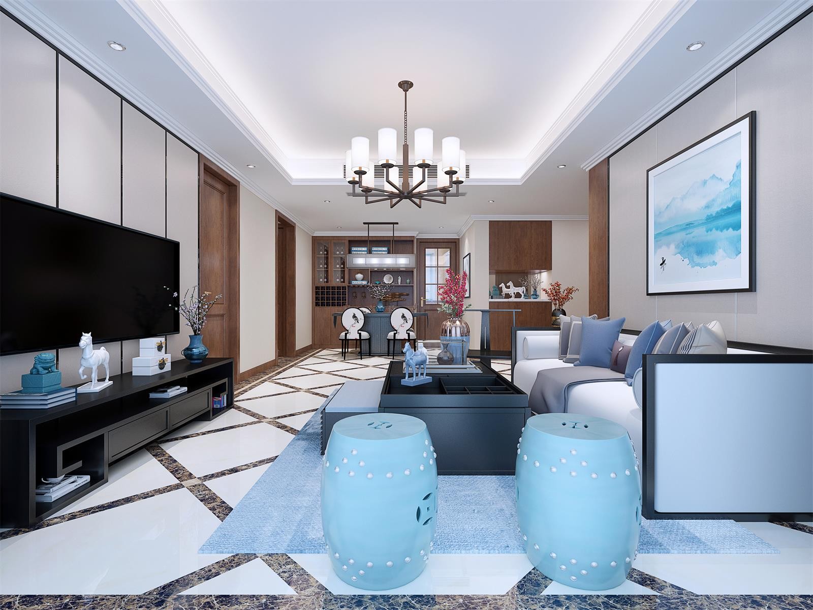 室内主色调汲取了江南水乡***烟灰蓝,在空间中铺陈出别有风致的现代中式美学,处处透露着对东方清雅生活意境的美好追求。