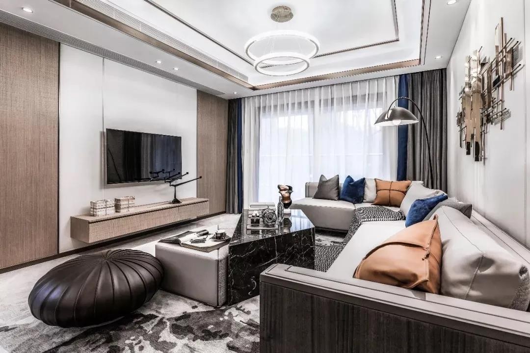 在这套139平米的房子装修中,整体空间以现代风的空间基础,在角落、踢脚线、吊顶与家具细节上,加入大量的金属质感,再以艺术感满满的家具与造型设计,打造出一种华丽而有档次空间氛围。