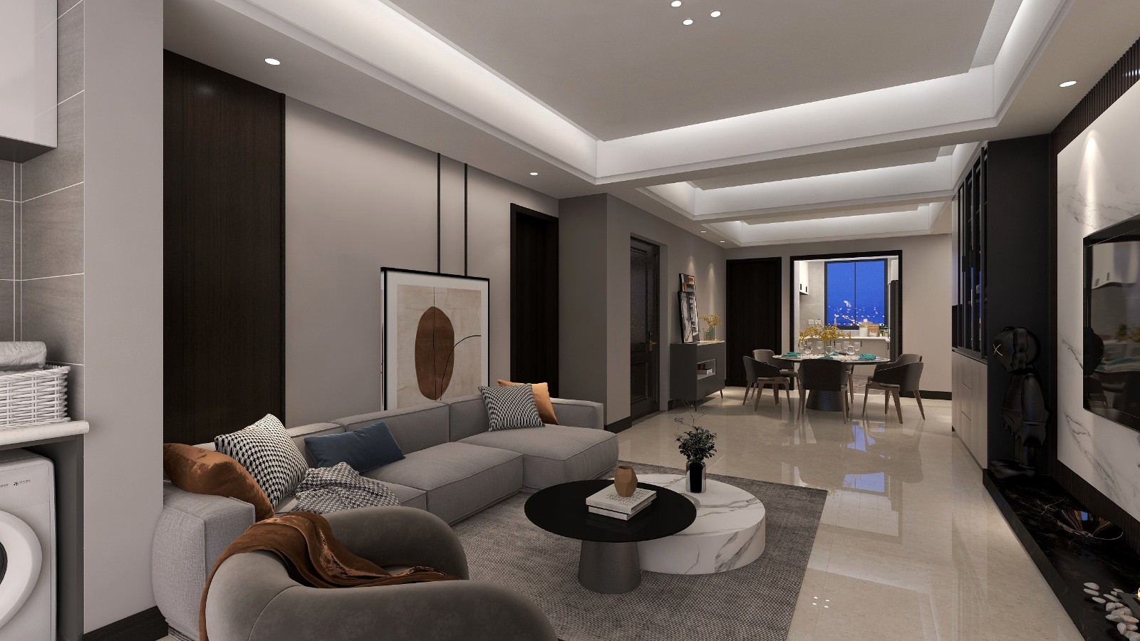 入户就是客餐厅,双眼皮吊顶在视觉上可以增加空间感。