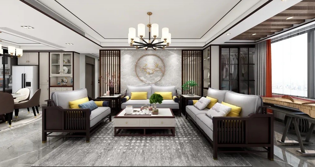 新中式装修的风格比较讲究空间的层次感和跳跃感,中式的屏风、让层次更明显
