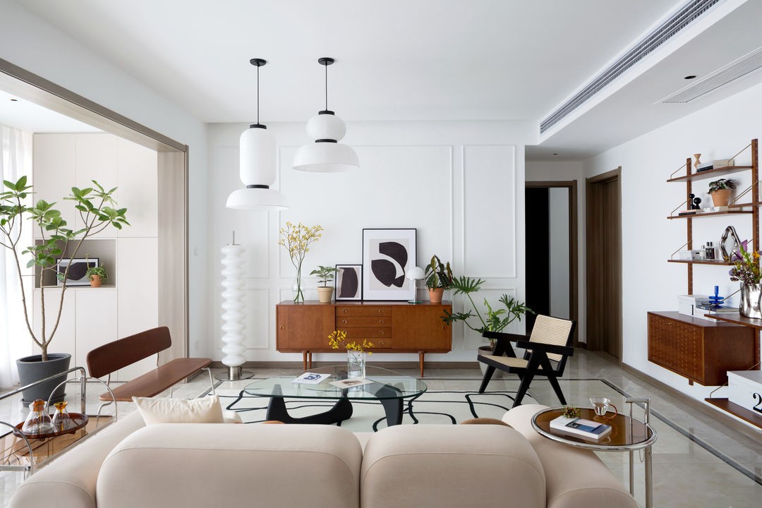 考虑到了客户的生活场景,在客厅需要一个坐着看书的地方,所以有了单椅、休闲椅、沙发能不同舒适度的选择。想要给家里增添室外鸟语花香的感觉,所以买了很多高的绿植和花艺放置在阳台上。