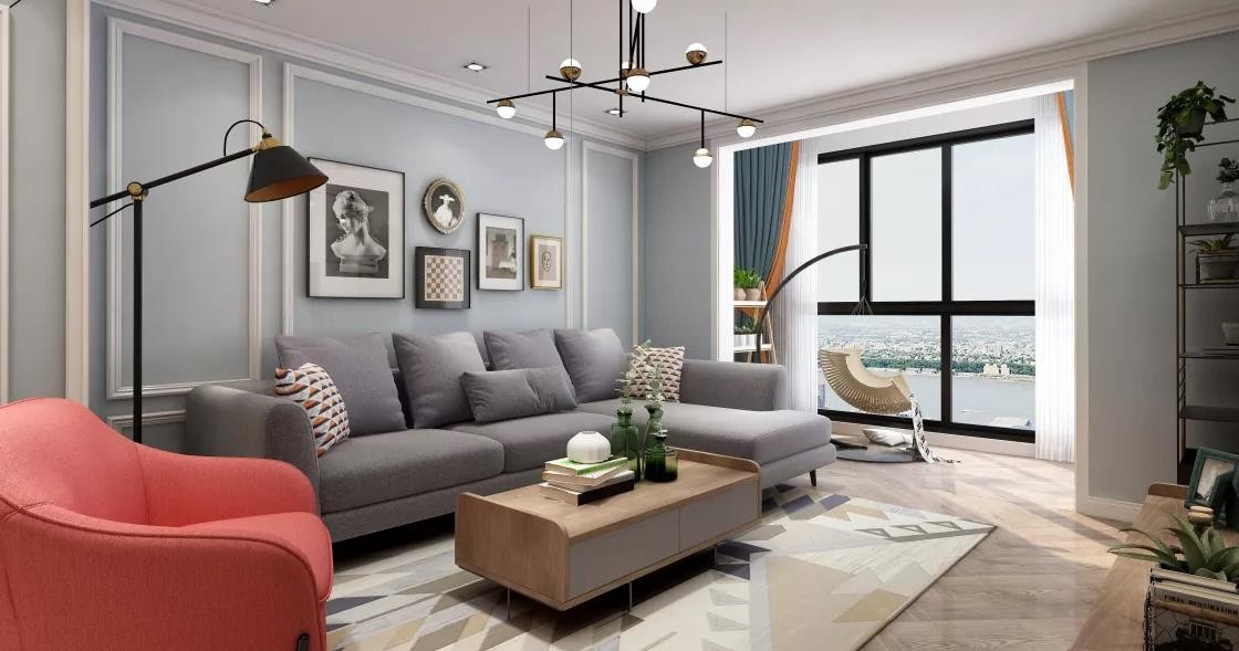 客厅采用极简铁艺灯具