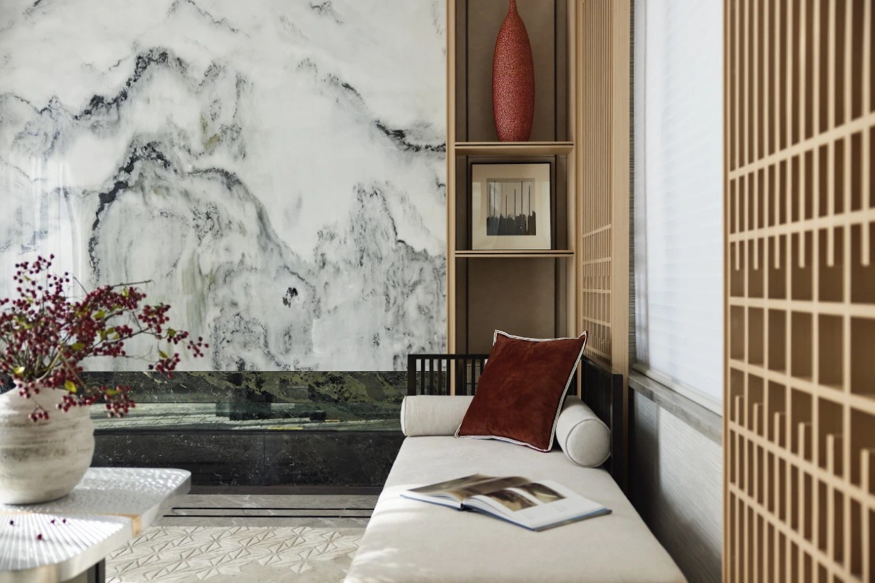 基于对材质的尊重与理解,以纯手工家具打磨和细腻的色彩质感变化。在寻常的生活与使用当中,人们会感觉到这体贴入微的细节处理。通过红色为跳色探寻与塑造精英人群所向往的生活方式,营造居住者与空间情绪、城市节奏之间有深度的合鸣,演绎时尚现代的高品质艺术生活。
