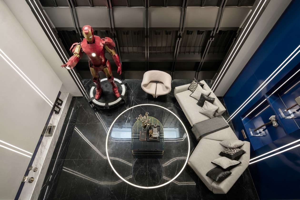 漫威系列手办爱好者的自由之地 运用玻璃、金属等材料 让空间具有视觉延伸效果 以光与影的和谐 衬托出舒适的奢华之感