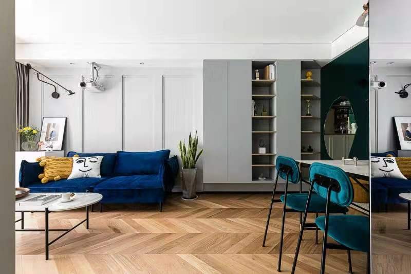 整体颜色色彩分明,简约不失调性,暖木色底板增加生活的温度。