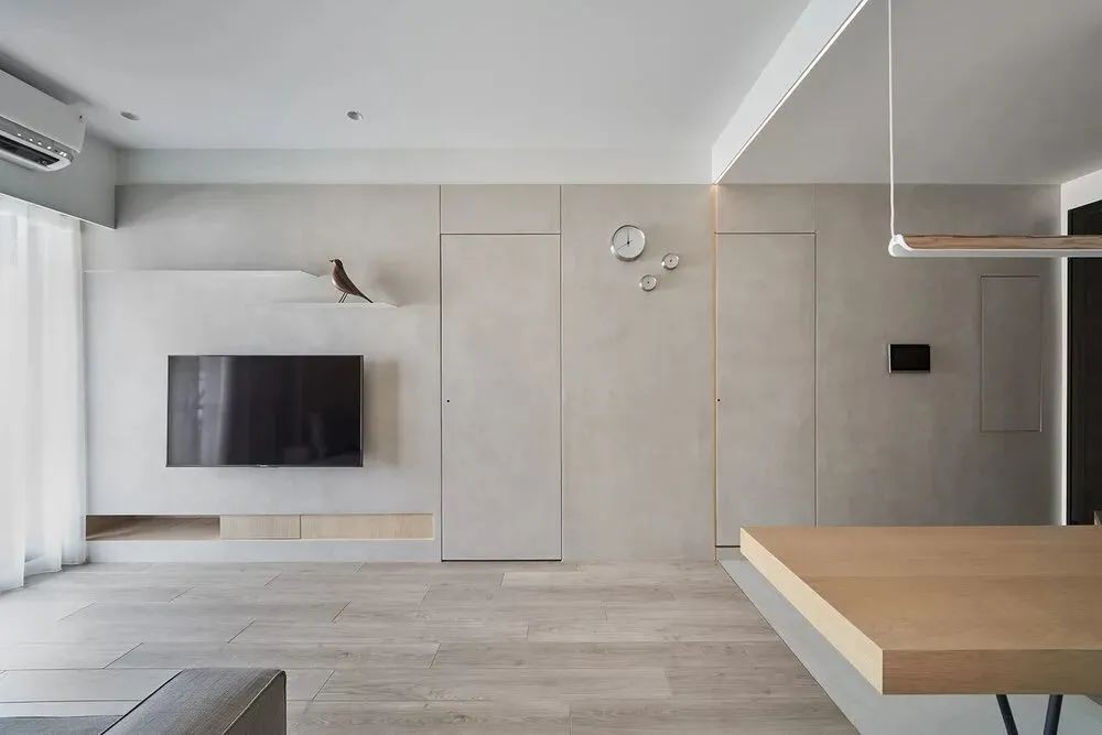 这案子49***空间居住成员为两大一小,因为本身空间不大,所以设计师在设计中让卧室小一些,尽量让公共空间大一点,从而满足家庭生活的互动需要。将原有房间让出一些面积变成厨房,用一道木皮墙将厨房与客厅连结,化整为零。