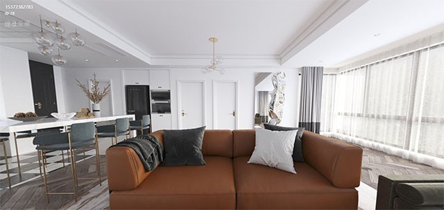 客厅皮质沙发易清理 高端大气 冰箱柜给厨房节省了空间