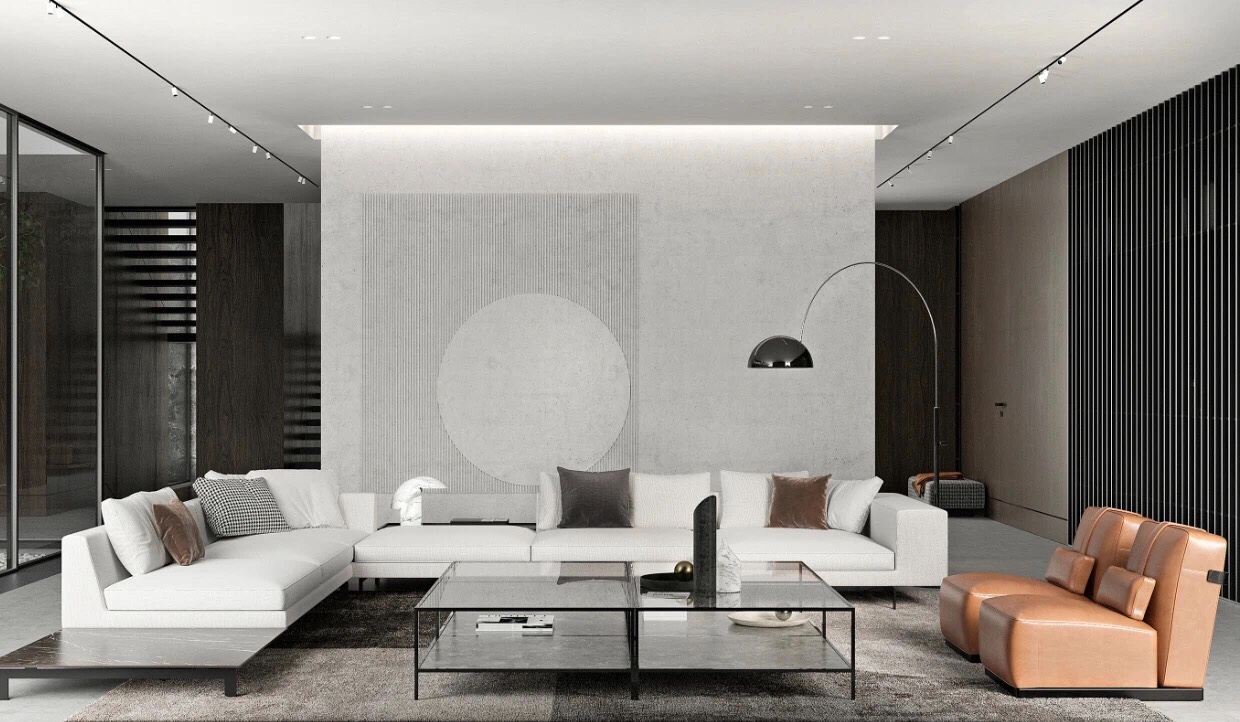 客厅的整体设计颇为现代极简,橘黄色的皮质沙发从一系列色彩中脱颖而出,成为细节点缀,让局部之处有迹可循,整体观感沁人心脾。