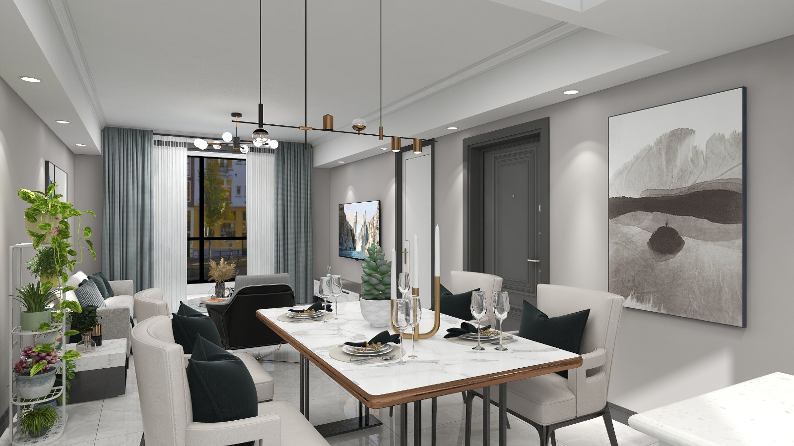 刚接触的时候,设计师在跟业主沟通下了解到:主卧卫生间做衣帽间,只保留一个卫生间。厨房做开放式,全屋独立空调。设计师后期在设计方案上简洁的现代硬装基础上,来营造出简洁、时尚的感觉,从客厅到餐厅到厨房,都是用开放式的方式,将空间扩大到超大化。