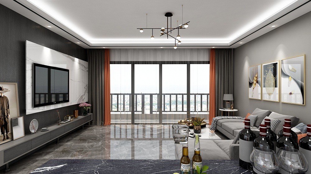 没有用太多的色系,只用了灰色来作为主调,一张布艺长沙发+茶几,满足基本使用需求。而落地窗的设计,***限度的保证客厅的采光。因此,能给人一种简约而不简单的感觉。