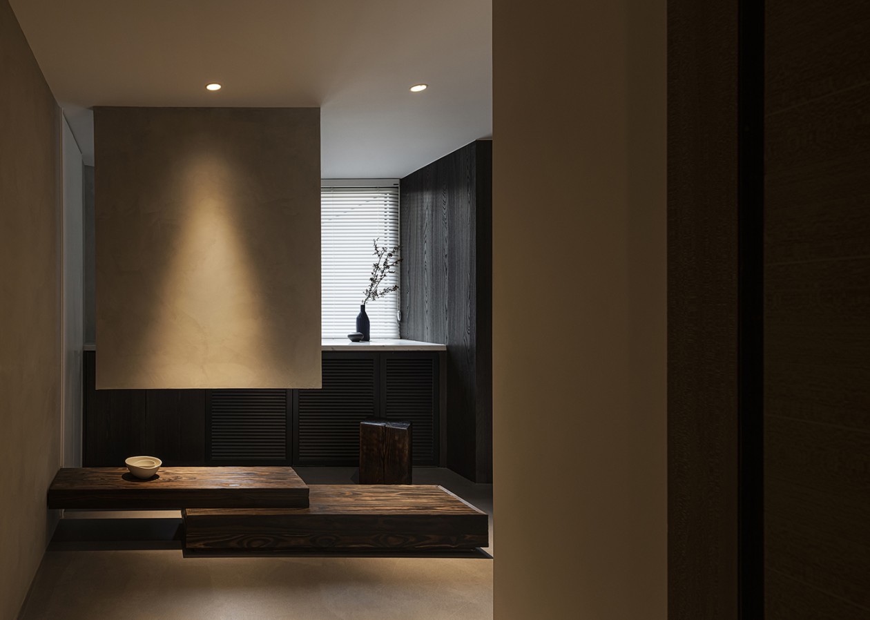在当代的极简造型中,融入些许侘寂元素,构建出一个内敛沉静的居室