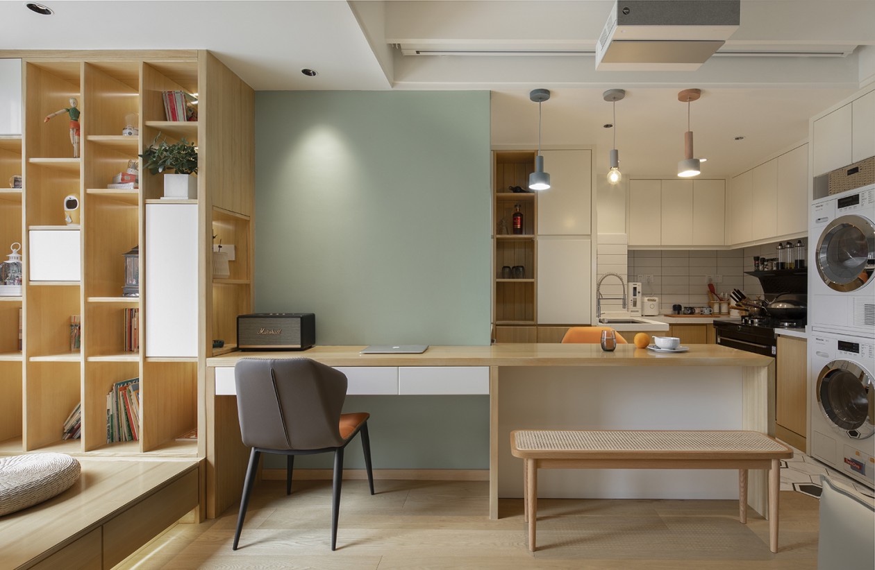 木色的台面与白色的抽屉形成了色彩的对比