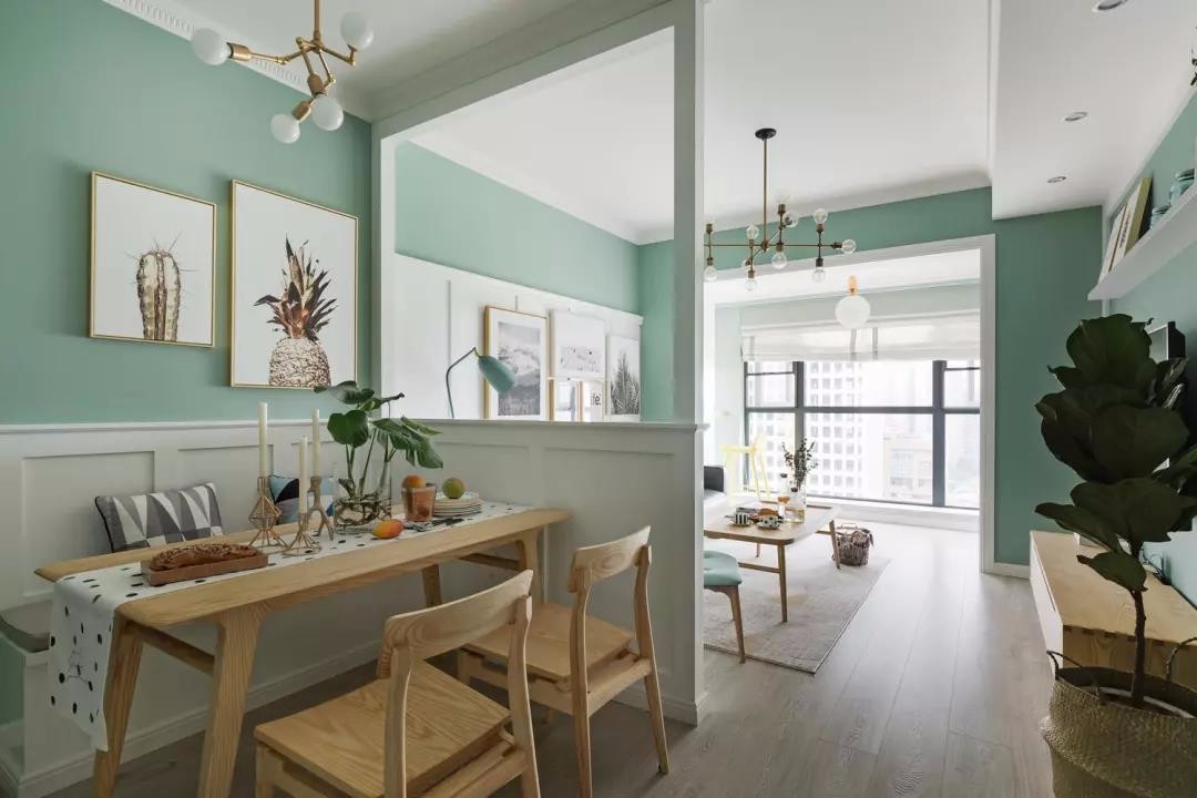 ▲静谧的白色和清新时尚的薄荷绿形成了客厅的主基调。