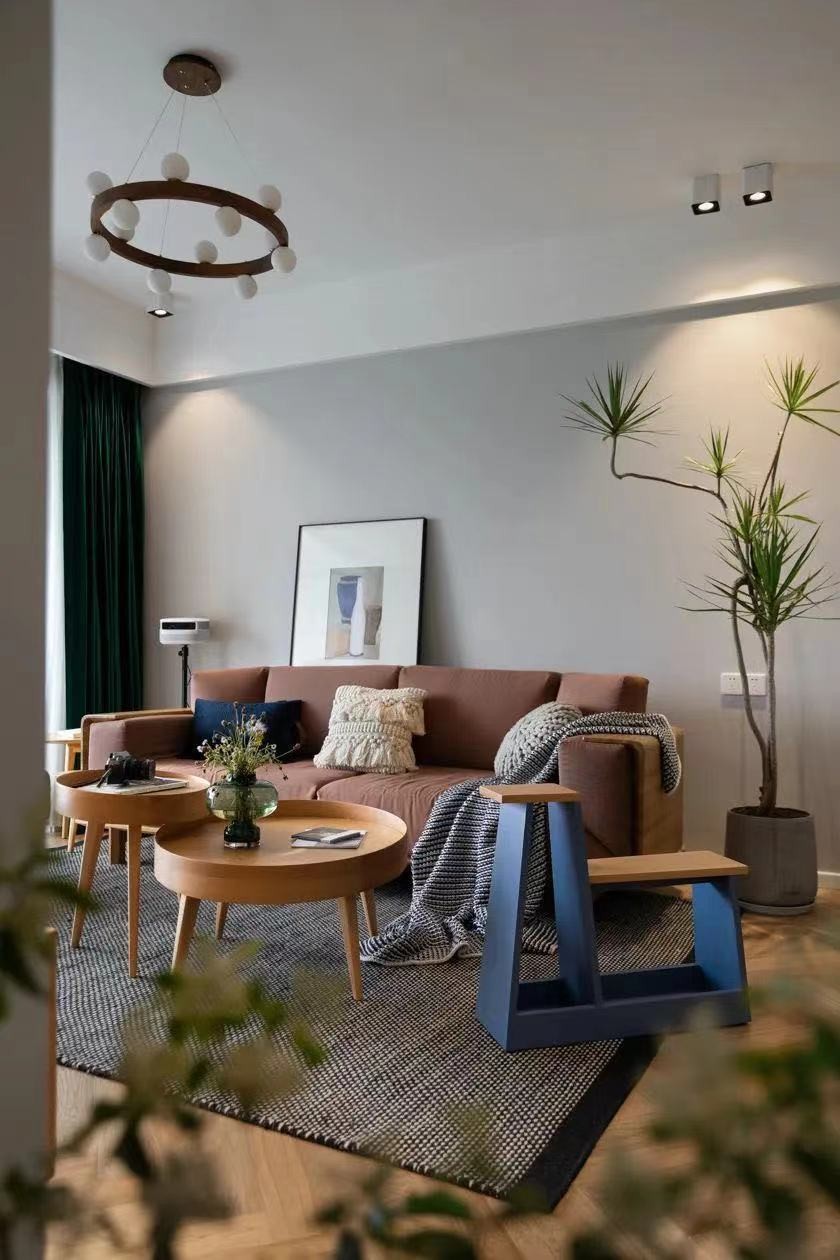 这套案例落地最开始是用的木色比较多,后来和客户沟通后可以大胆一点 用了很多偏深的颜色来做点缀。