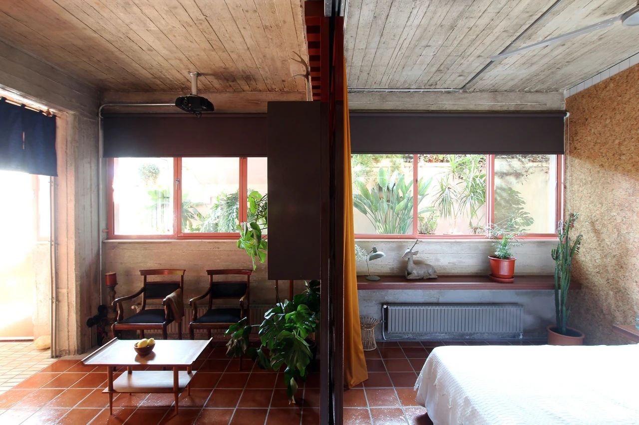 从它未完成的状态创造了一个积极的,透明的,轻质的隔墙和钢和玻璃滑动板被合并来划分不同的区域代替内墙。