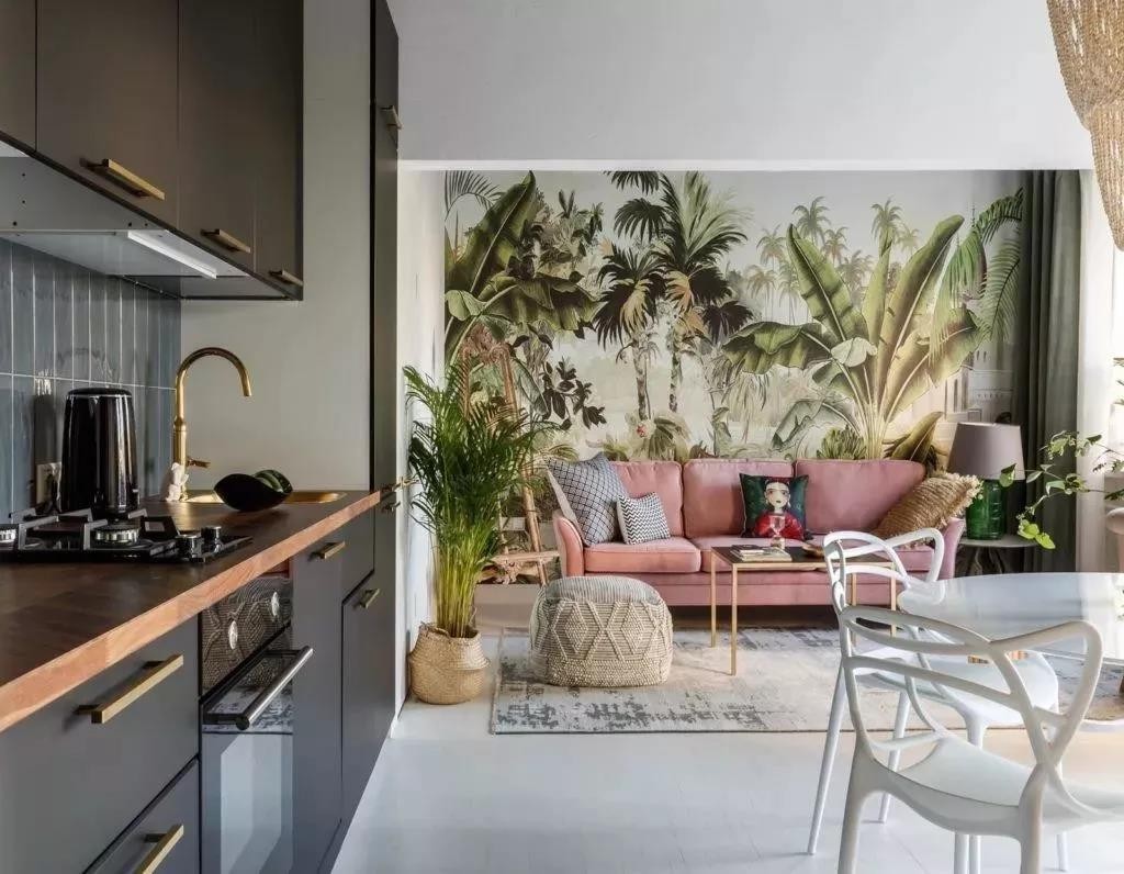 今天分享的是一套建筑面积49平米的古典轻奢风小户型单身公寓案例,设计师以森系元素搭配复古的美式风家具,再用铜质金属来进行点缀,把这个小窝变得非常独特,如果你也喜欢这种风格的设计,那就可以参考一下哦~