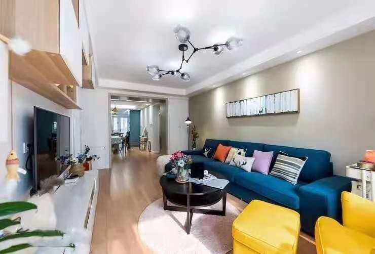 ①把厨房改造成开放式,和餐厅打通,让空间更宽敞通透一些,而且采光性也更好了; ②原始户型中入户门正对次卫门,风水不太好; ③原始户型没有玄关空间,换鞋等需求无法满足。在设计规划中,③区域设置了两个大高柜用于储物。