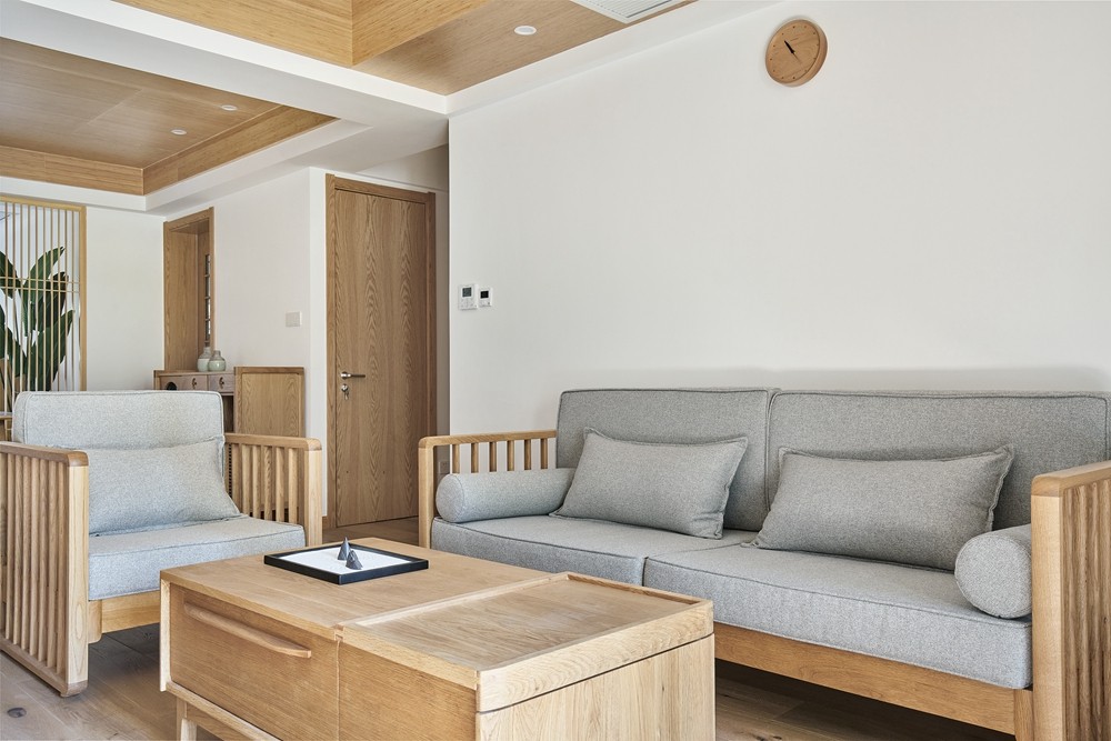 木色与灰色的融合,色调和谐优雅,为空间营造了一种宁静自然的氛围。