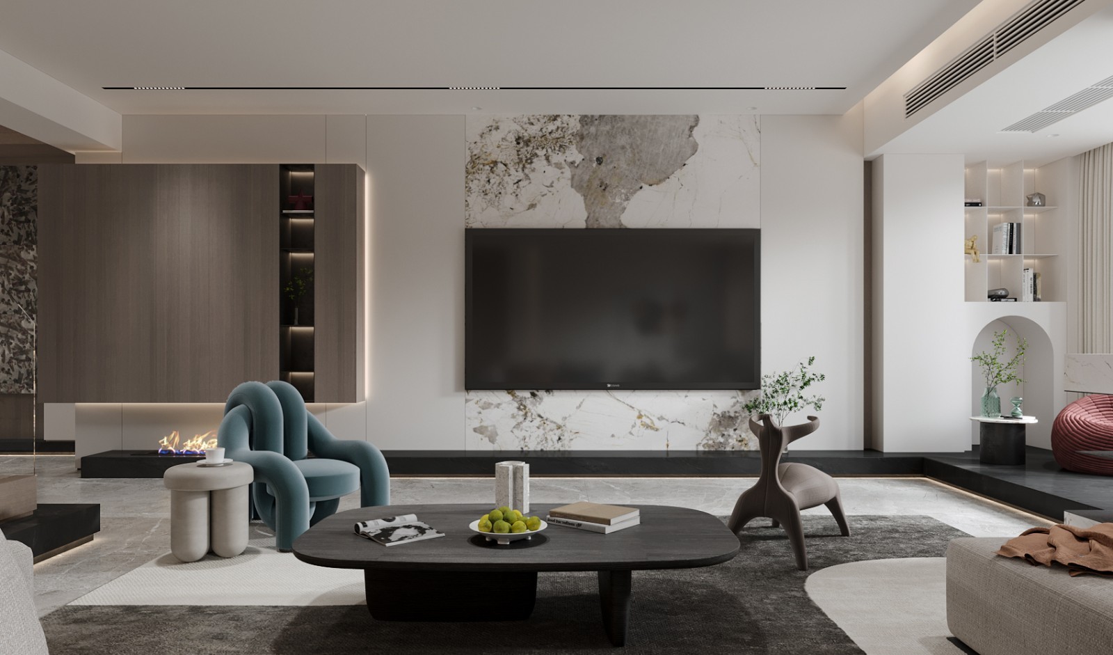 柜体岩板绝配组合,阳台做一个外凸户型空间,空间趣味性更灵动。