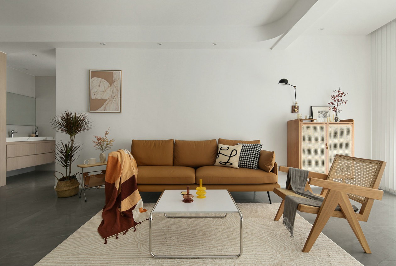 沙发背景干净简约,木橙散发缓缓暖意。
