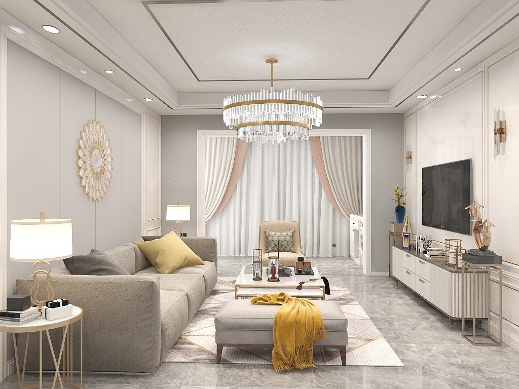 客厅吊顶简单,使现代风格更好地得到体现,室内色彩的搭配淡雅而温润。