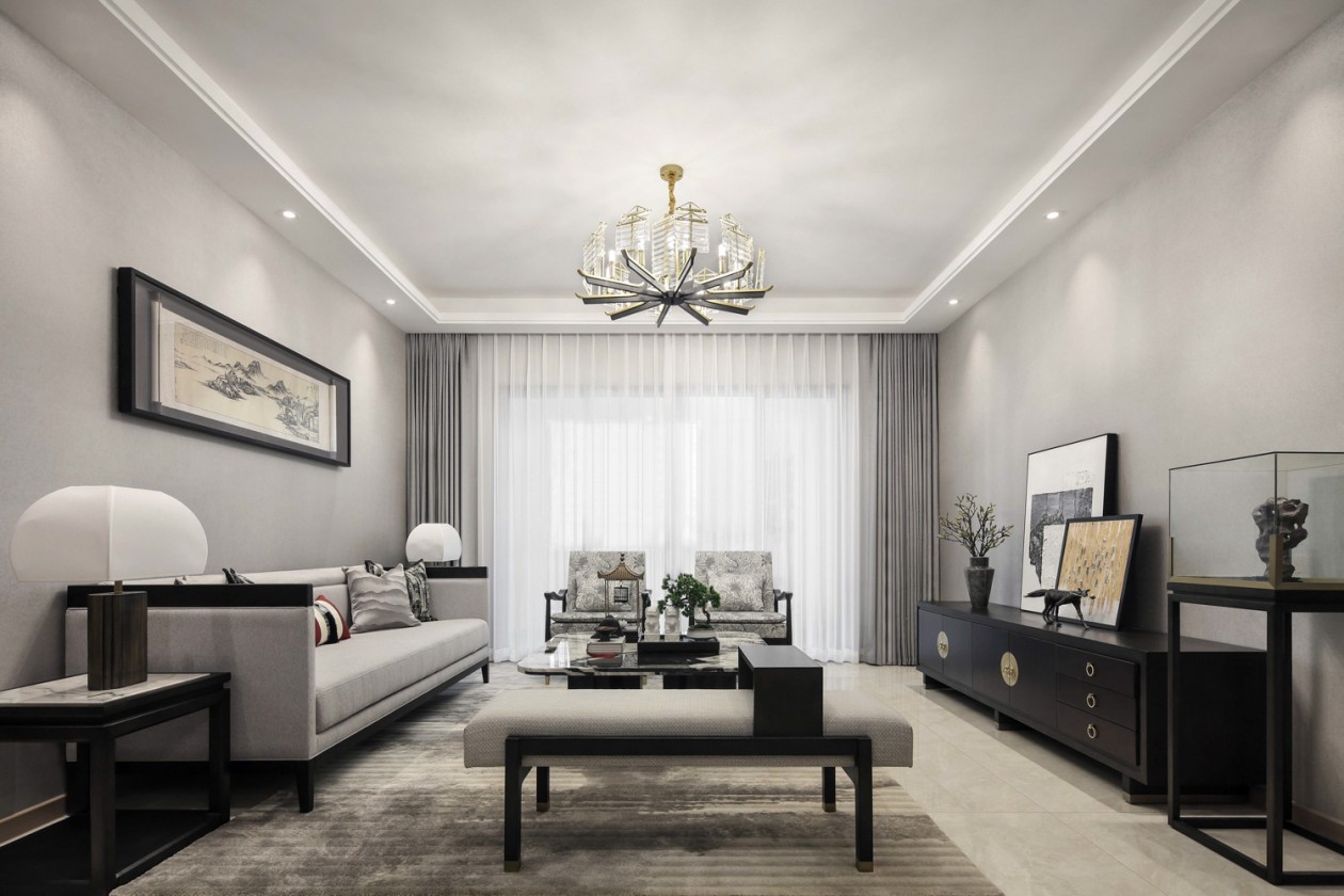 主卧东方韵味浓郁,***中***的时光从这里开启,淡雅柔和的色调颇具惬意悠然之感,背景墙的古画气韵十足,极富张力之美,看似不事雕琢,却又恰到好处。顶部吊灯将竹叶雕刻其中,含蓄了丰富生活的质感,让空间更有仪式感。