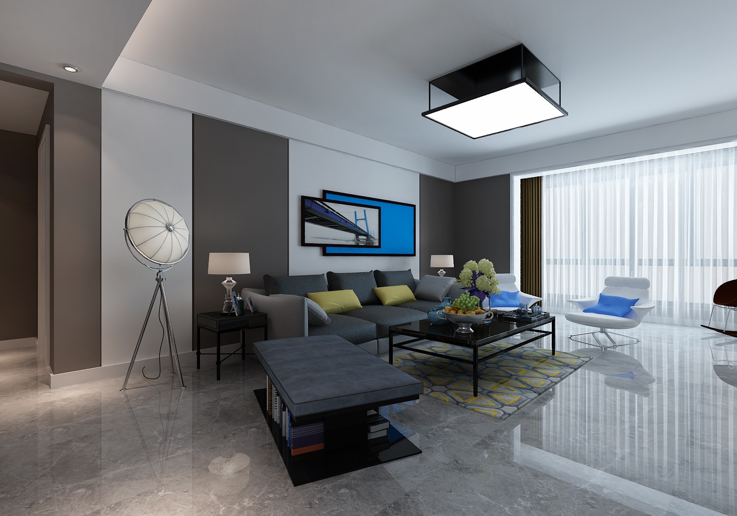 整个客厅的搭配以深浅跳色为主,简单不失美