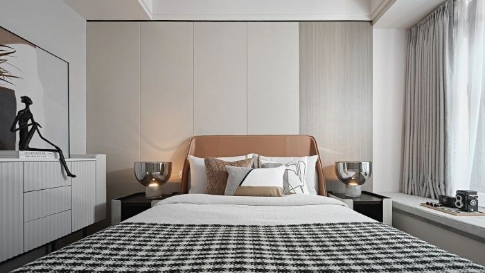 以干净纯粹的视觉感受,有序不紊乱的传达自在随性的线条之美;以低调轻奢之感,恰到好处地打造了温和且充满质感的睡卧氛围.