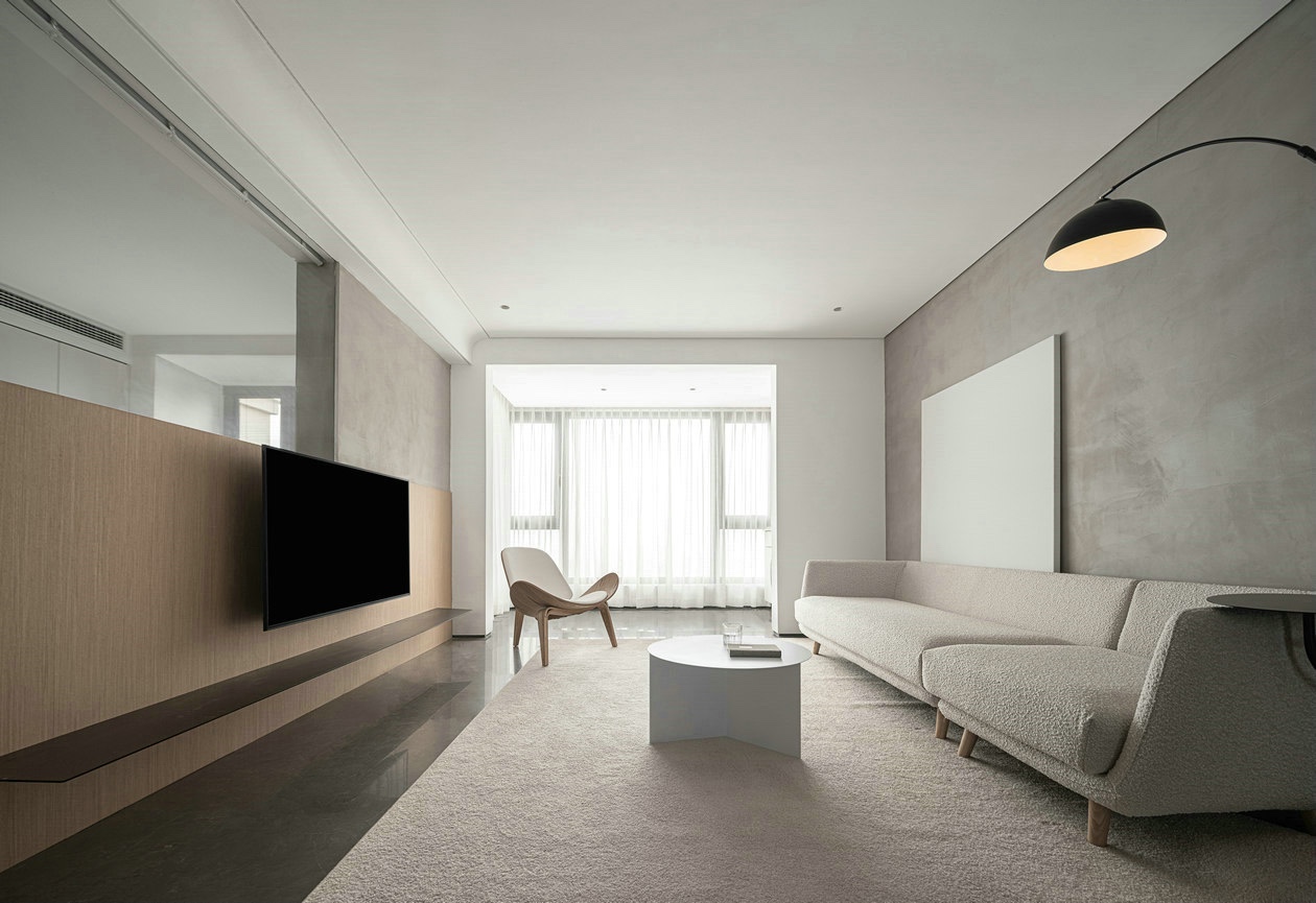 引入建筑设计手法,将餐桌与墙体穿插组合,极简美观