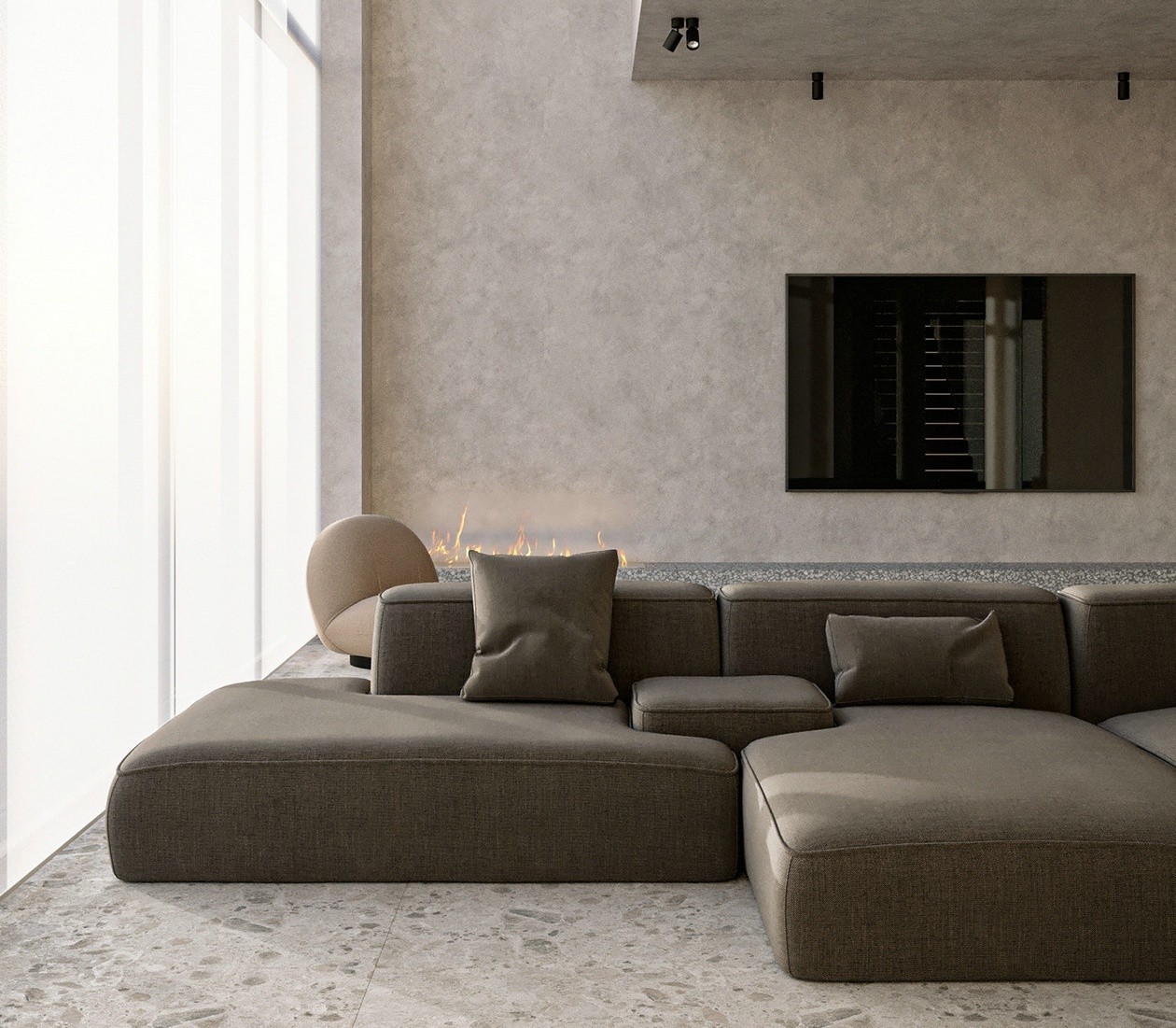 混凝土的粗粝与木纹的细腻,色调上却惊人地统一,营造最简洁的北欧风格。