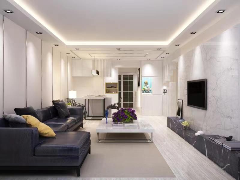 一进入客厅最吸引人的一定是沙发和电视柜,在这洁白的空间里黑色会显得十分突兀,但也使整个空间稳重了下来。茶几上紫色的鲜花也给客厅空间带来了些许活力!