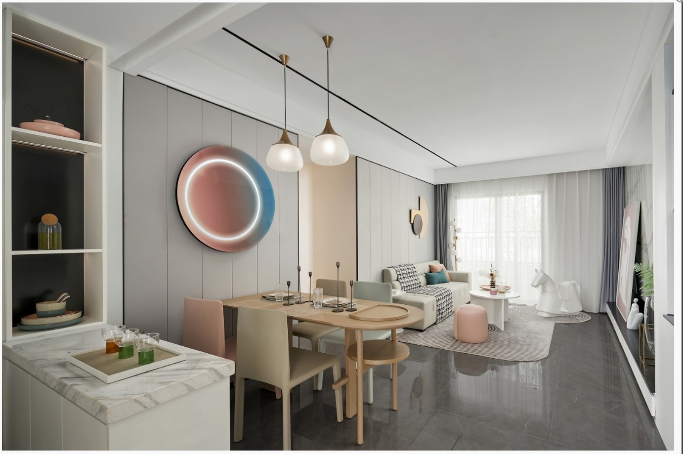以简约为基础的现代轻奢风格,通过一些精致的软装元素来凸显空间质感