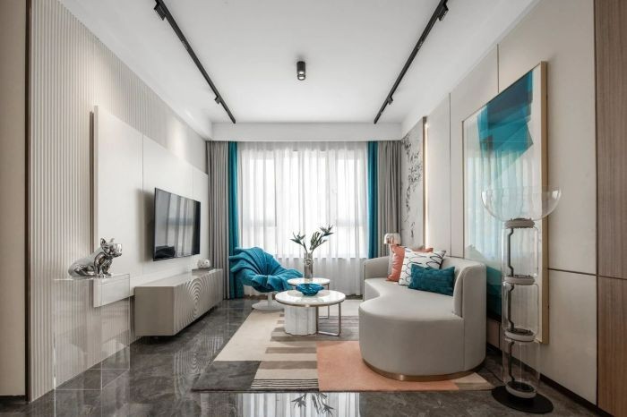 高调的湖蓝色给人年轻、活泼和浪漫的感官体验 ,暖色空间融合些湖蓝色显得温馨又极具张力,空间收纳万千写意。用色彩的纯度传递个性的符号,视觉上张扬且不失格调,我们通过对线条与色块的巧妙应用营造出舒适、自然、艺术的空间感受。