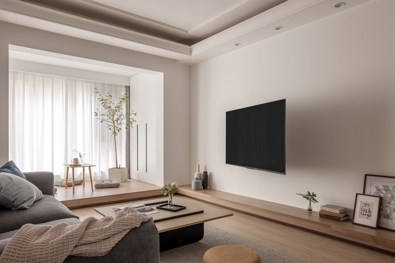 墙体以留白处理 质朴柔软的软装搭配 与量体的定制柜成虚实对比 赋予空间多一层表情和姿态 形成视觉上的“呼吸感