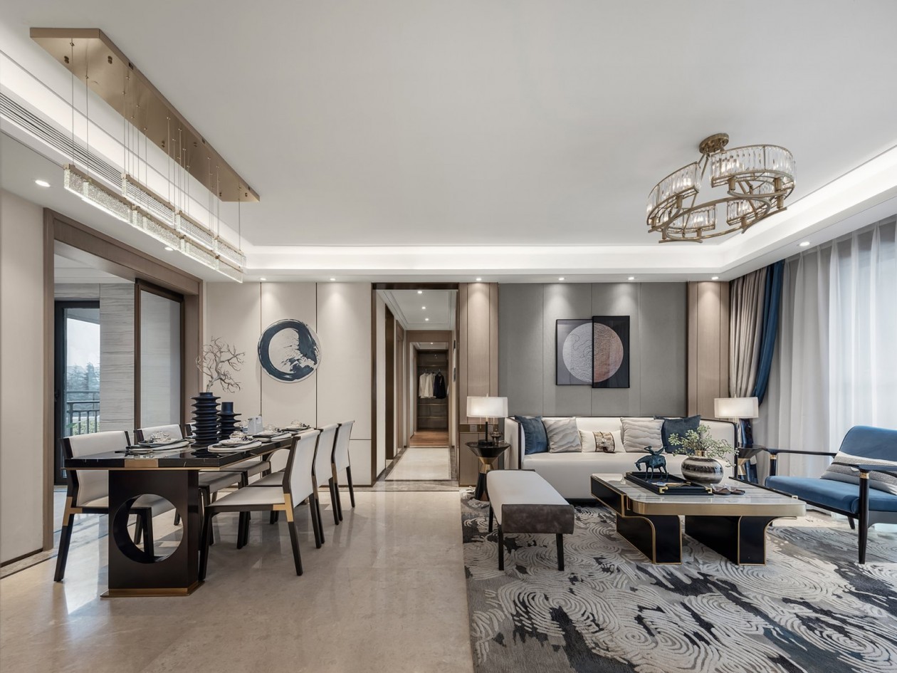 靛蓝低饱和度的色调,淡雅而不失活力大气,有着极舒适的色彩视感,是营造舒缓氛围居室空间的***色彩。宁静的格局观感总是能轻易抚慰人们内心的焦躁,营造一方清爽灵动的自由天地。新中式的家具和高品质的材质,营造一个艺术、舒适、精致的生活空间。