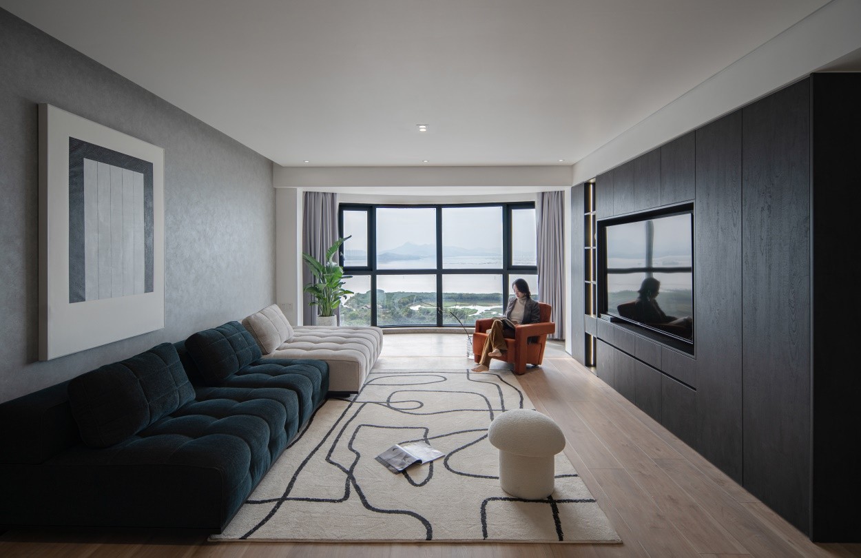 落地窗引入城市山林,黑白灰调赋予空间酷帅的范儿,舒适的材质和柔软的触感渲染空间,带给人放松与惬意。