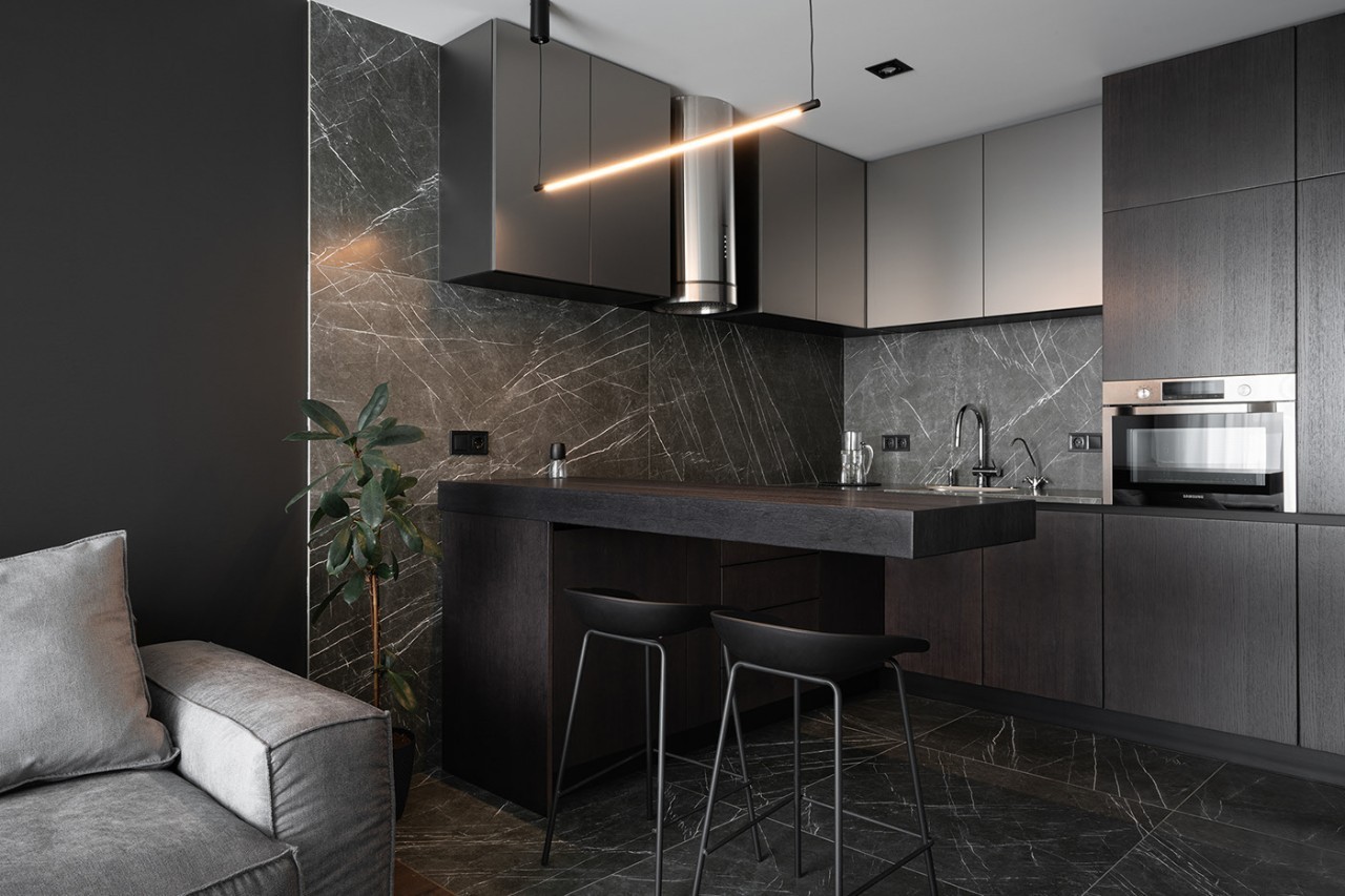 这套 65㎡ 的公寓,黑白灰的大面积使用 使整个空间更显简约