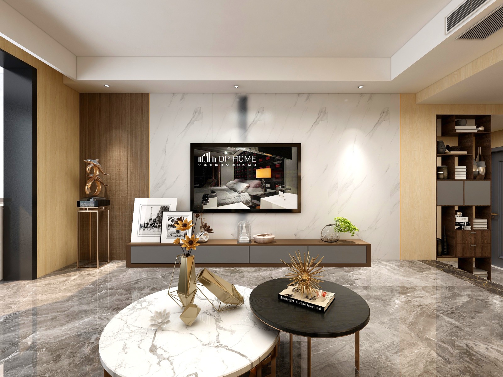 丰富的是材质上的多元化,大理石、木料、金属、皮革的巧妙融合