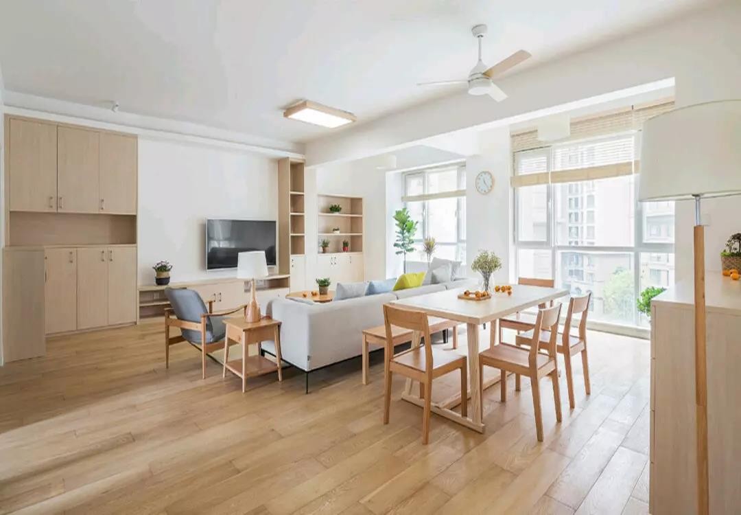 原始自然的白色乳胶漆墙面与顶面配以木色的实木地板。自然流畅。素雅的棉麻透气沙发,纯棉抱枕,慵懒的躺在沙发上释放***的疲惫。
