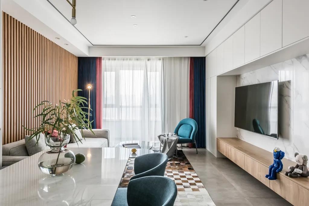 一套103㎡的现代简约三居室,格局稍显紧促,极大扩大功能区,合理增加储物空间。