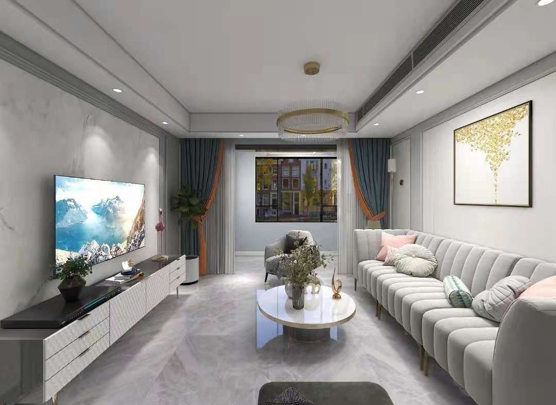 电视背景墙用淡黄色纹路的大理石上墙,轻奢风体现的淋漓尽致。