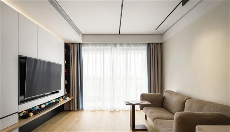 定制整墙电视收纳柜,遵循藏八露二的设计法则,丰富柜体功能与层次