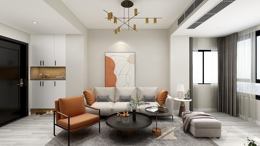 开门即客厅,用鞋柜打造玄关区,达到缓冲效果,客厅连接超大阳台,采光能力直接拉满!
