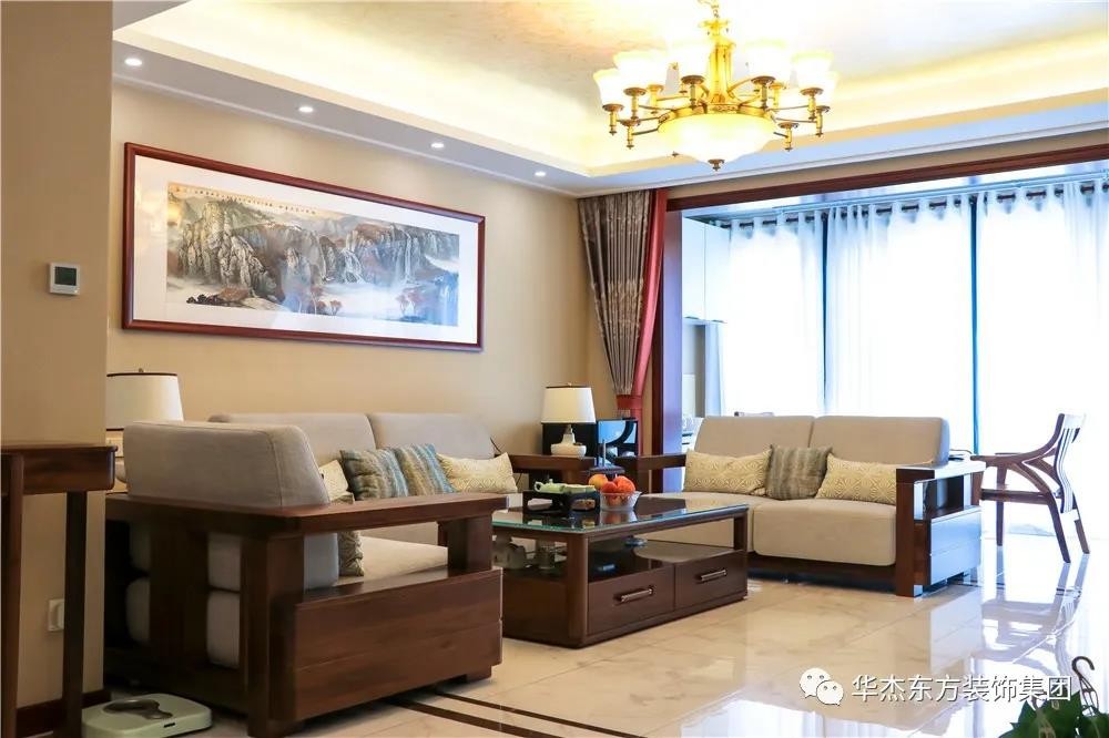 沙发背景墙挂了一幅中国山水画,于山水之间,自有一番悠然意境,让客厅瞬拥一种古韵内敛之美。