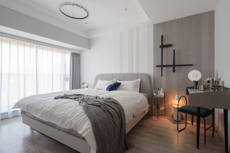 搭配全屋通刷的浅灰色墙面,改用浅色木地板,使空间清新素雅。
