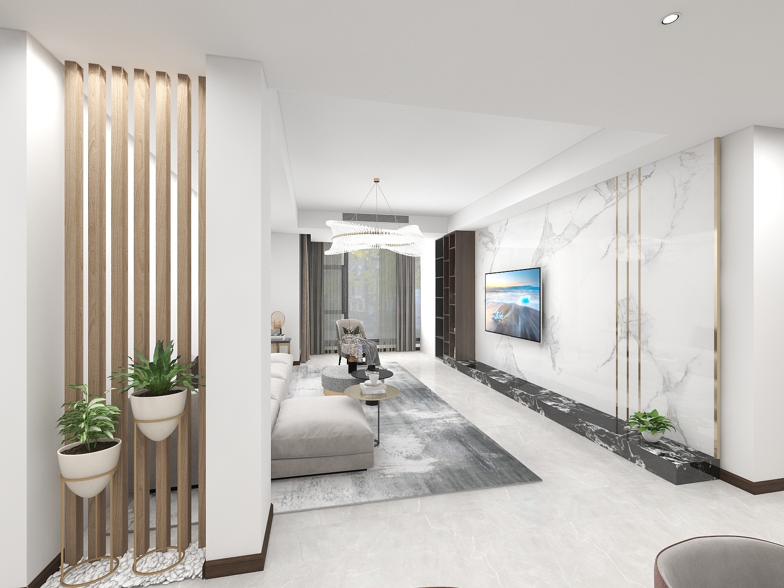 在本案设计中把原来的客餐厅和次卧调换了位置,增加了客厅空间的同时也增加了次卧的储物功能。